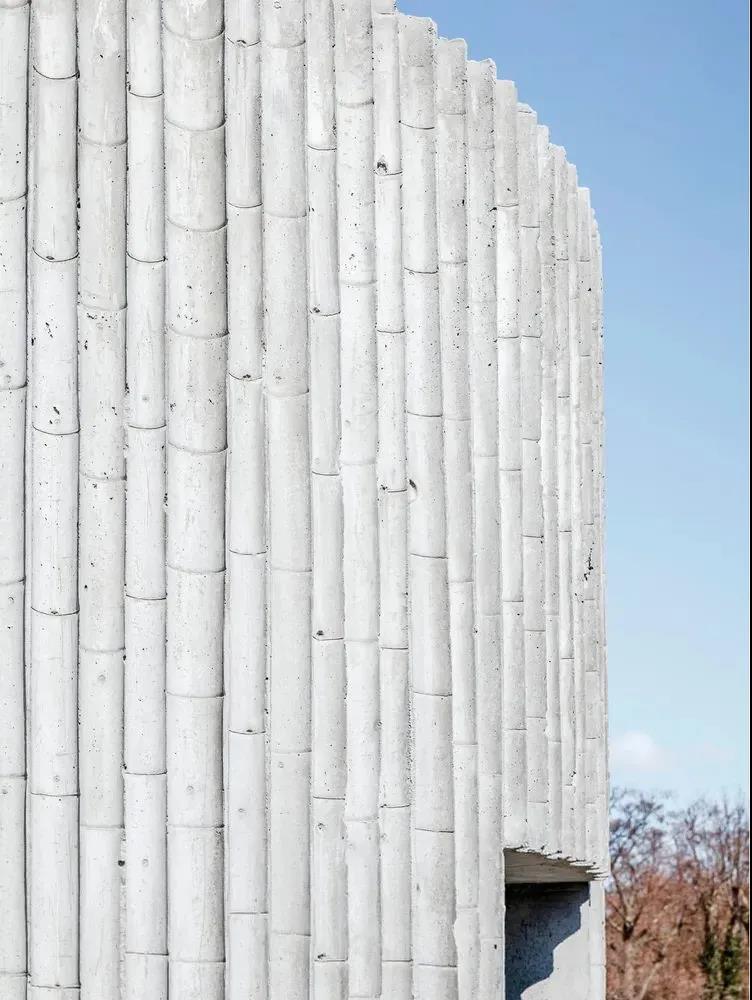 表面纹理似竹子造型,竹子的肌理打破传统混凝土冰冷、凌厉的感觉。材质亲近自然,起到一定的装饰作用;