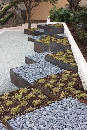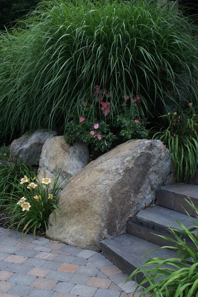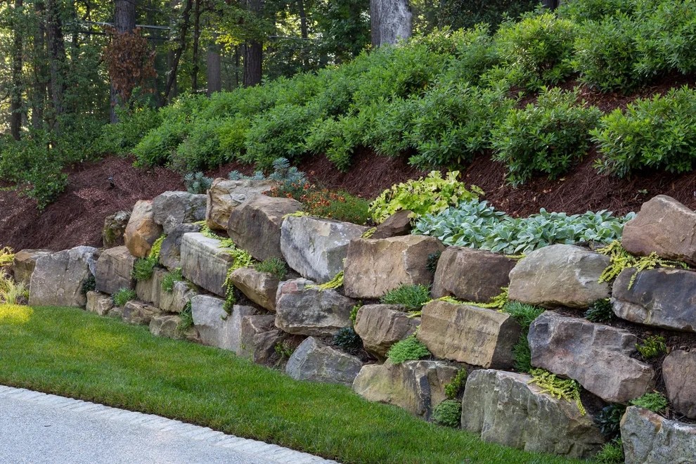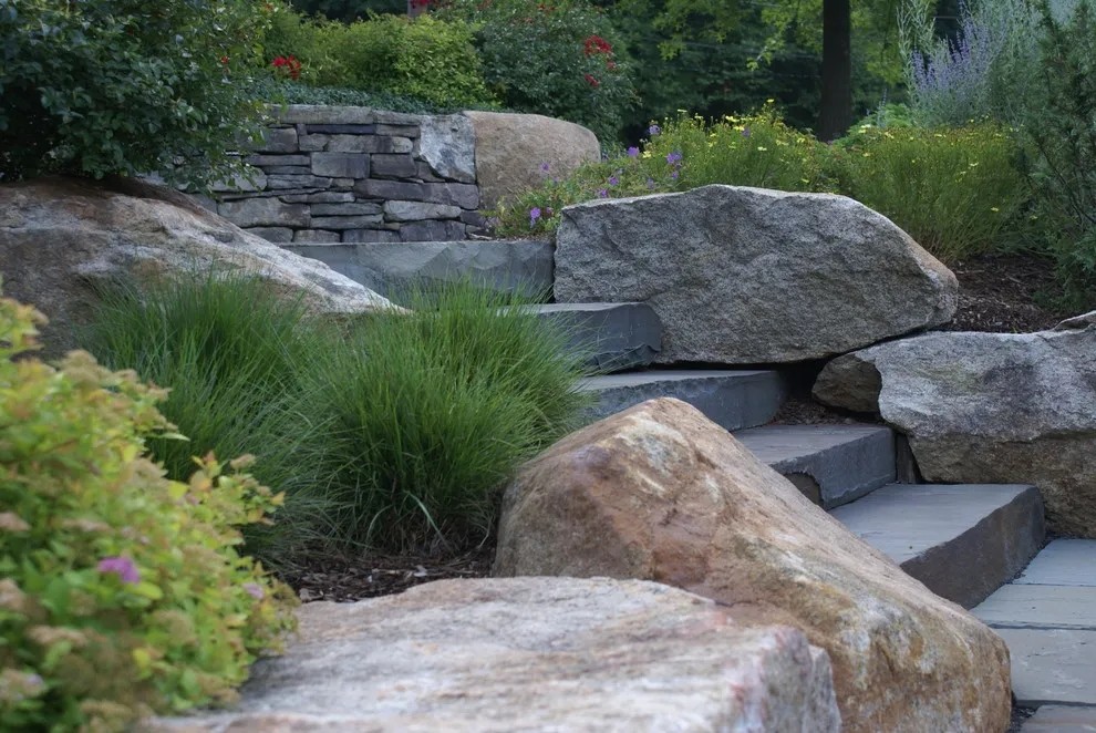 乡村景观庭院,运用本地的岩石做区块围合