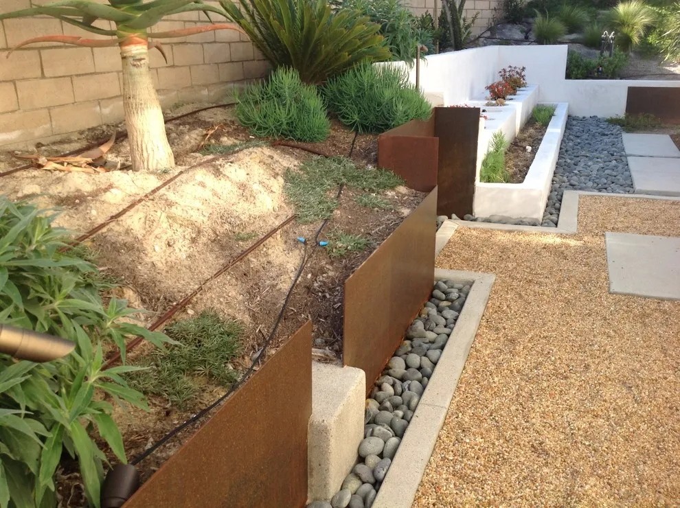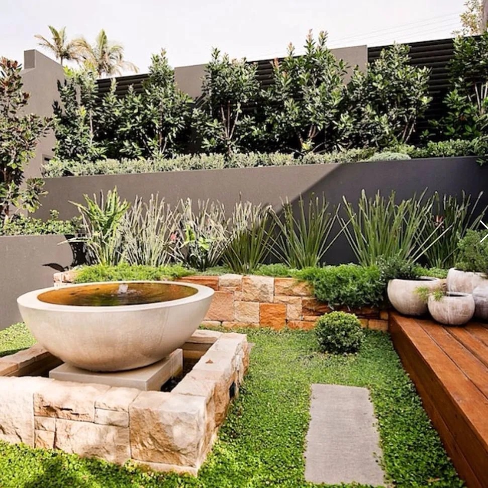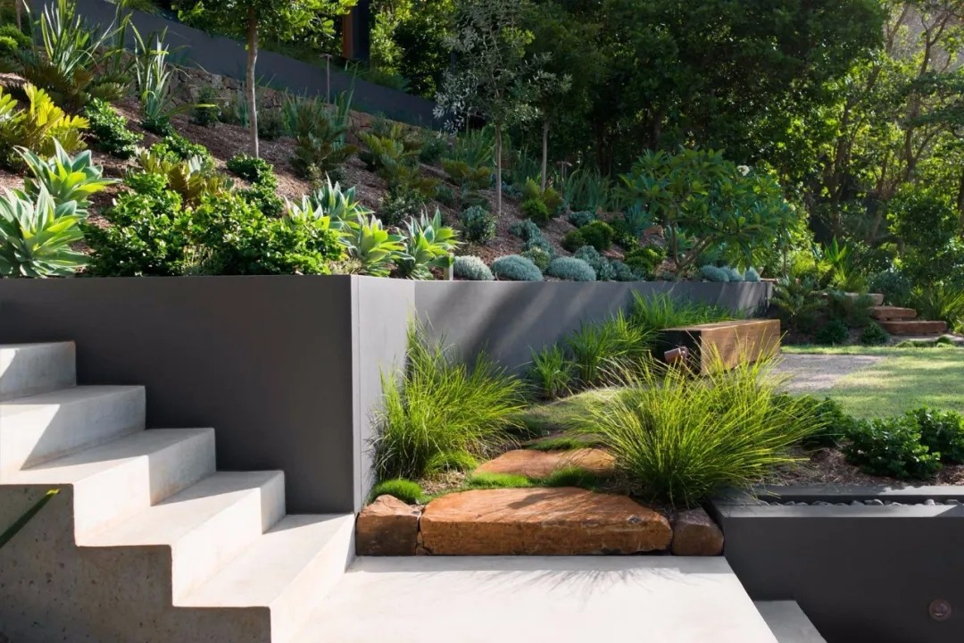 有点落差的院子用低围挡做界限