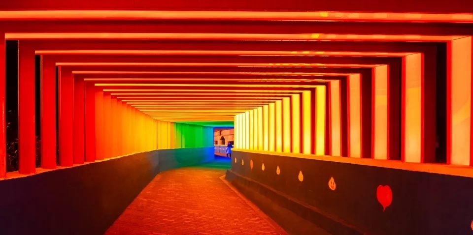 △设计师保罗·考克赛用彩色透明圆盘构成了一道亮丽的风景