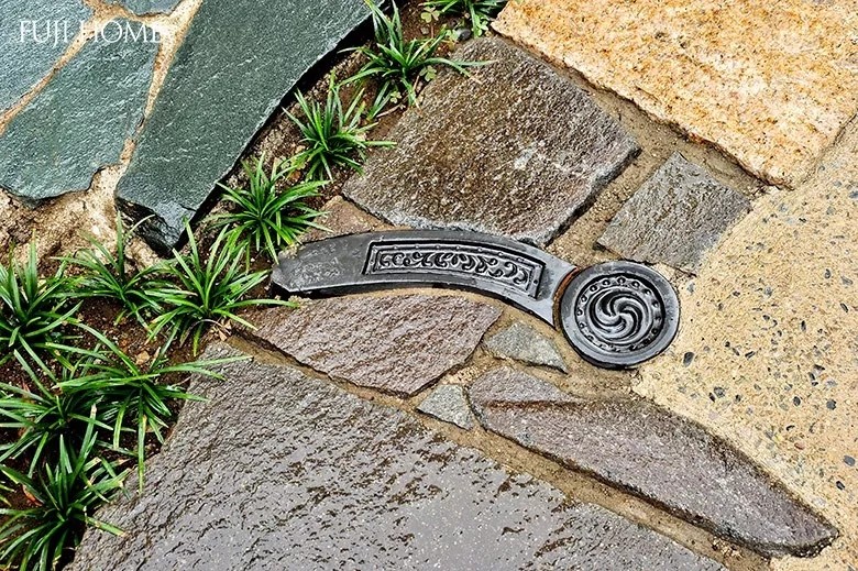 粗糙的造型,水流过六角形石头。根植于气候的传统园林绿化和种植为中庭带来了水分。