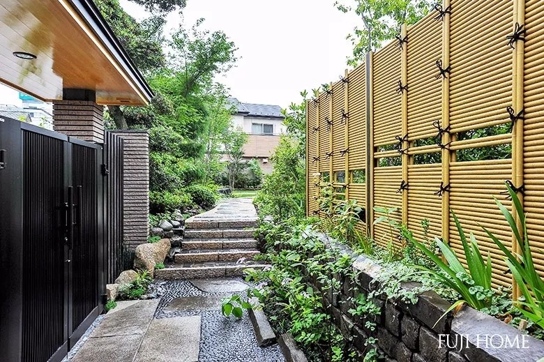 停车场的入口处是重型的门。设计师使用竹子障景,以便不能直接看到花园。