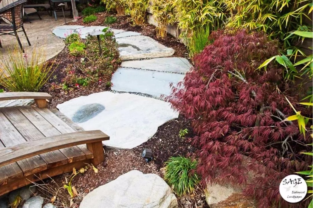 这是个拥有很多植物和树木的花园,每个季节都有不同的美景。庭院中使用了大量的天然石材,呈现出了每一处经得起仔细看的精致景观。