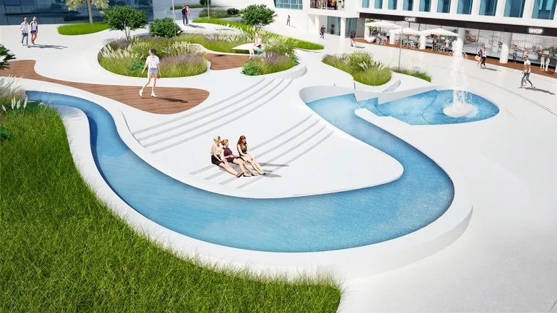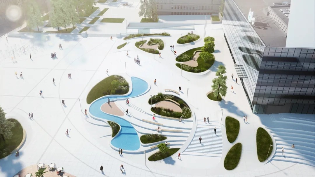 这是位于立陶宛的一个在建项目:V-广场,由3deluxe负责设计。设计师通过多层次的视觉体验及路径设计,再现历史背景。喷泉造型以波罗的海为灵感,二元网格状结构形成自然的“岛屿”,不同的设计元素使广场生动活泼。