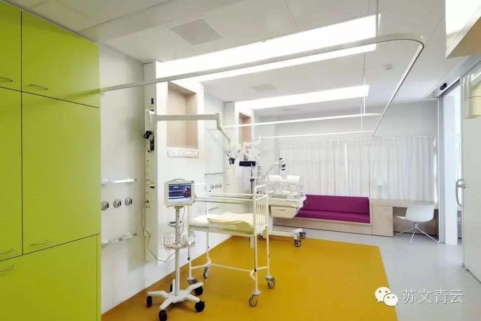 各个年龄段的孩子们需要不同的环境设计和适合不同年龄的设施,而在医院这样一个特殊的场合则需要将不同的需求相连贯,在设计的过程中要考虑婴儿还有护理人员,不仅仅是医生和护士,还有婴儿的家庭。在这个环境中,要让父母贴近婴儿,必要时还要能够容纳整个家庭——包括婴儿的哥哥或姐姐。