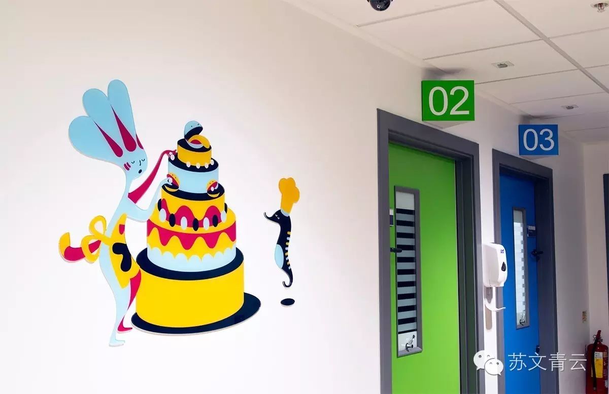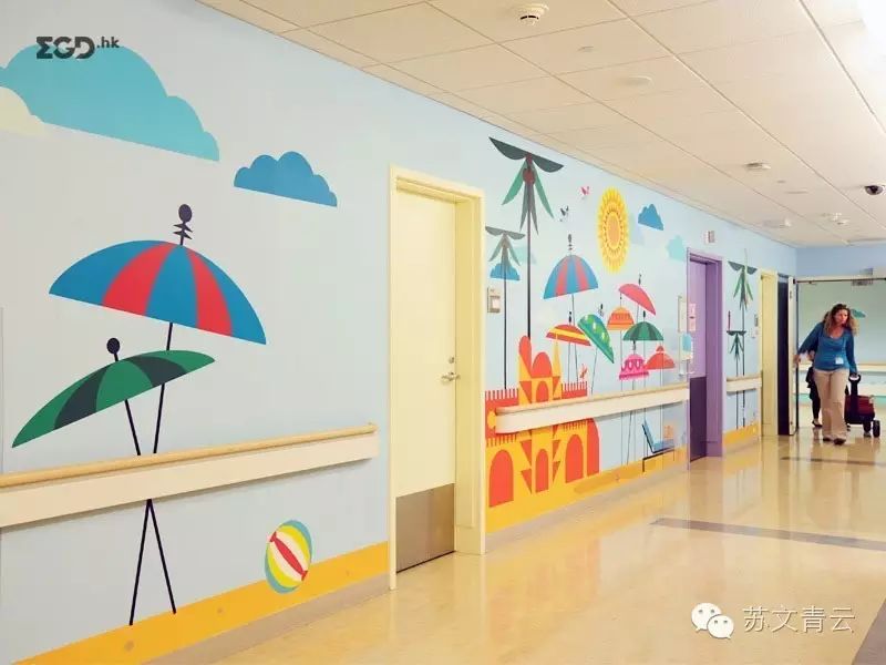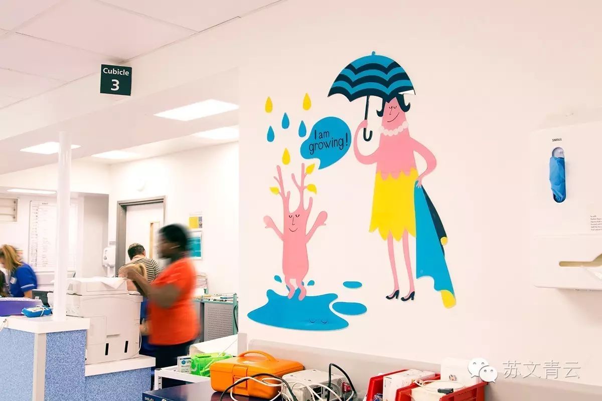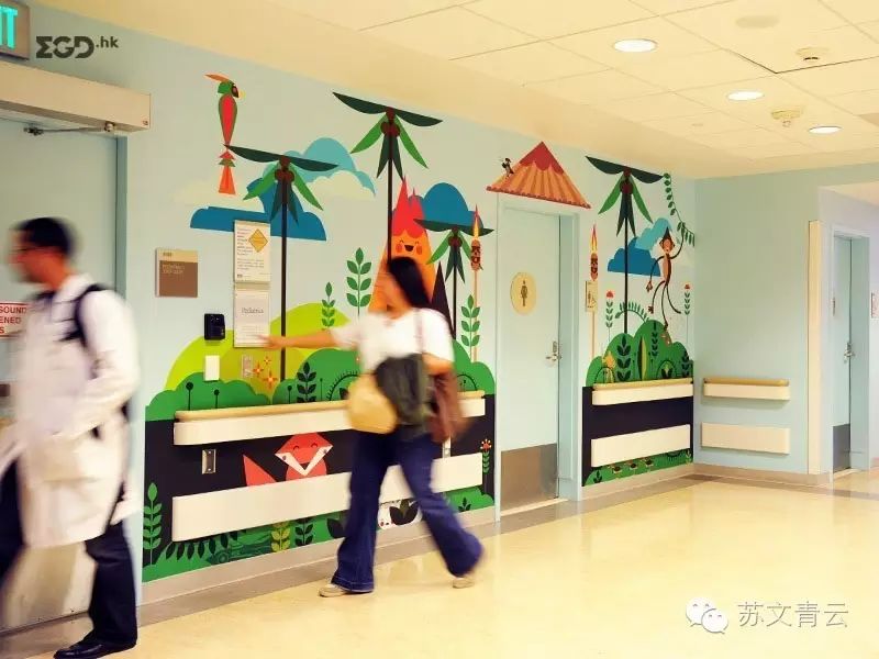 为了让医院色彩更丰富,更加友好受欢迎,通过设计这些能和人产生互动的生动的卡通形象让人觉得这家医院非常舒服,专业可信,也让病人更放松感觉更好。