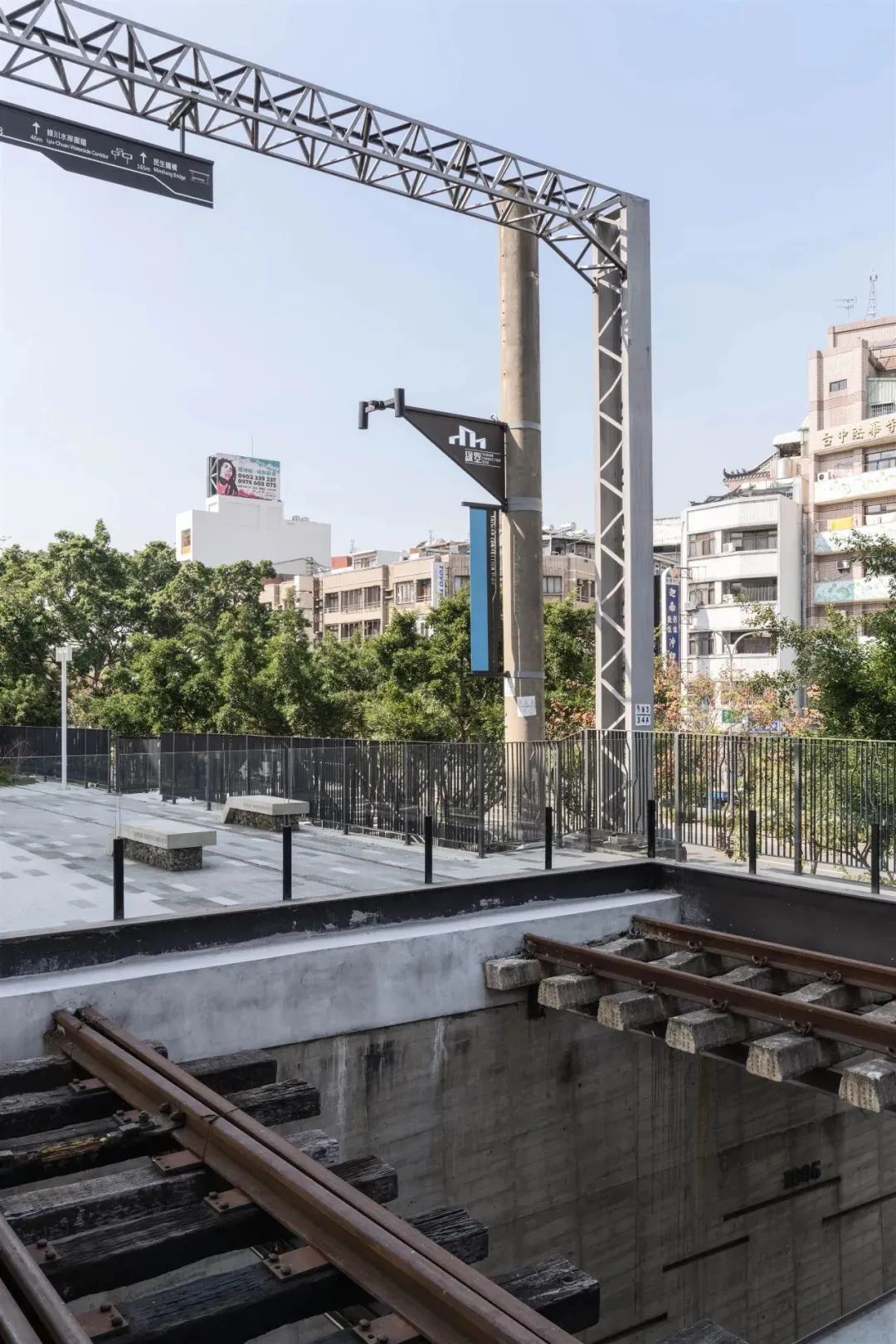 保留了旧铁路曾经存在的痕迹,像是驳坎、铁轨、跨路铁桥及部分铁道号志设施,让民众可以更加亲近旧铁道的细节;驳坎配合铁道高架化后,前后站空间的缝合与连结,提供市民于铁轨驳坎上俯瞰城市之特殊体验。