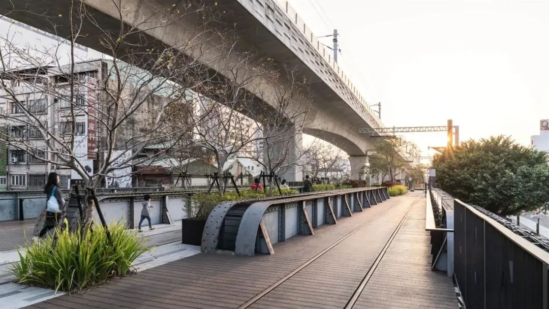 台中地区铁路高架化后,铁道空间与周边土地规划「 绿空铁道 1908」( 台中绿空铁道轴线计划 ),将那些因为铁路高架化而废弃不用的旧铁路空间进行再利用规划,巧妙地运用铁路交界处的轨道交叉模式进行配置,合理规划了人和自行车的流通动线,塑造了一条以人为本的绿z廊,并且重新定义 公园 概念,以景观都市主义的手法给台中旧城区带来新的活力。