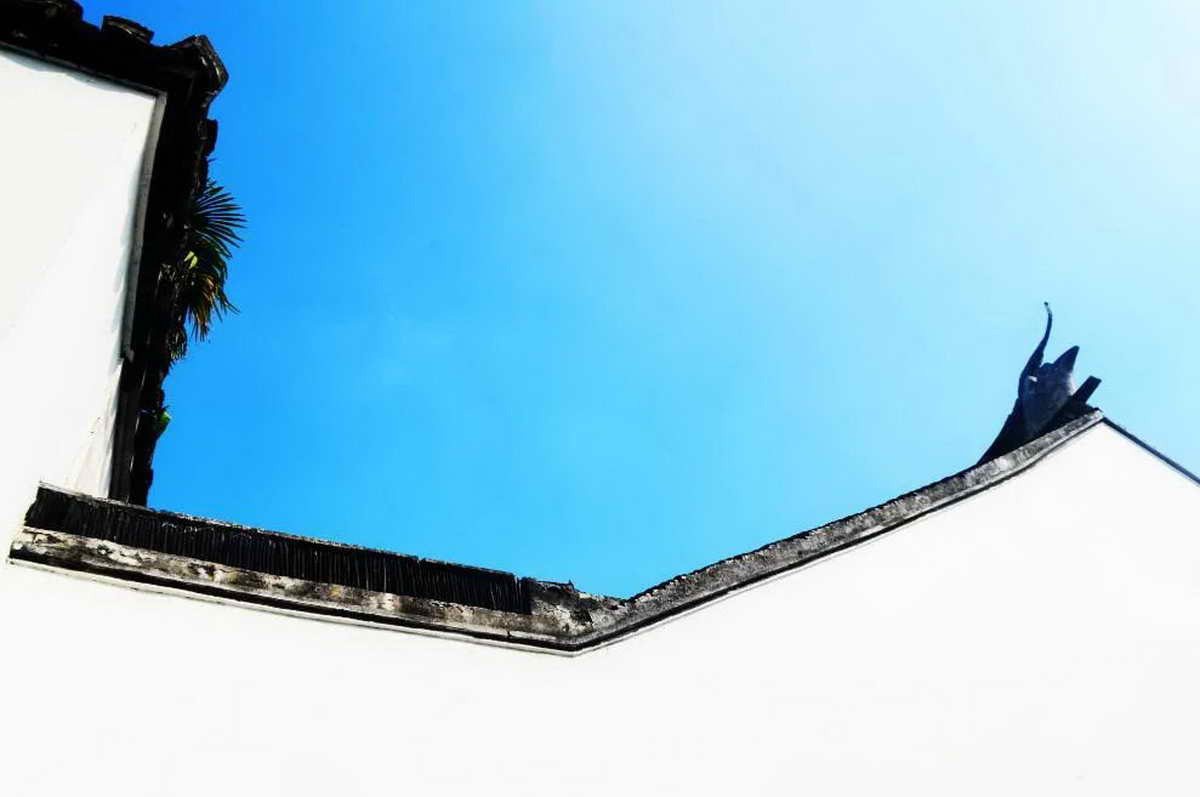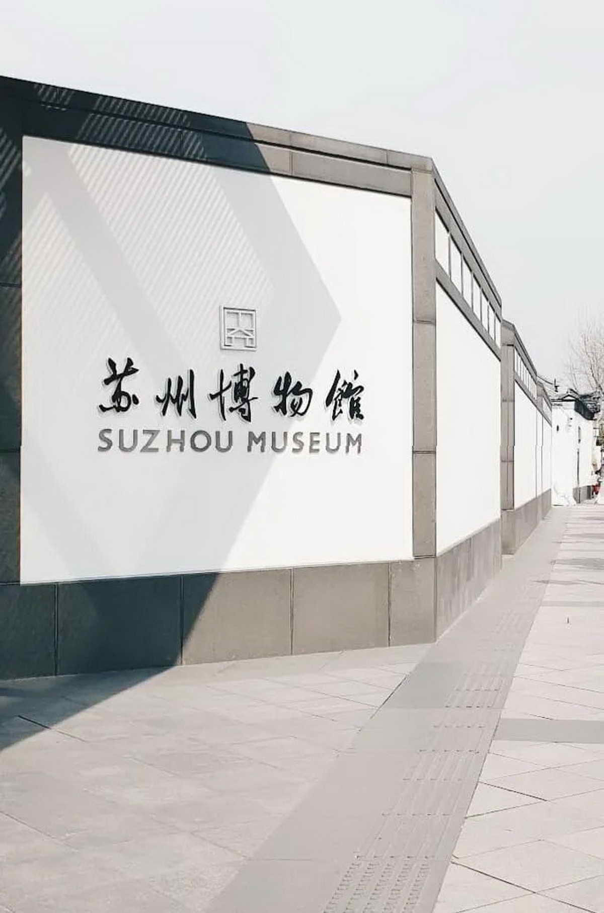 墙体的设计贝先生在苏州接受《纽约时报》记者采访时,说了这样一番话:“我不想要一个完全苏式的灰瓦飞檐,我需要一些新的东西来替代,发展建筑的体量……我就让墙爬上了屋顶”。深灰色花岗岩色带划分、勾勒白色墙面是苏博新馆墙体的形象特征。东方和西方艺术上的差异,前者强调对“线”的审美,后者突出对“体”的表现,无论是书法(西方没有)、绘画还是雕塑,东方艺术无不表现出这种“线”的审美特征,李泽厚先生称之为“线的艺术”。建筑也一样,单体的檐、脊、柱、架(木屋架)和群体平面铺开的线型串联组织,均强调了“线”而不是“体”这一特征。贝先生没受缚于传统的建筑型制,而是抓了这一艺术精神。对墙体的如此处理,我们可以把它理解为贝先生是在做像传统绘画那样的白描和勾勒,或者干脆就是在白纸上横竖撇捺。尽管在传统建筑中我们很难找到类似的形象,但我们对此没有陌生感。同时这种对墙面的划分又不是随意的。对大墙面的划分起到了减少建筑体量感的效果;墙上部的再划分完成了墙面与屋顶的过渡;对洞口的勾勒突出了洞口的画框感;而对墙转角延伸至屋顶的勾勒,则是强调了墙与顶的连续性。