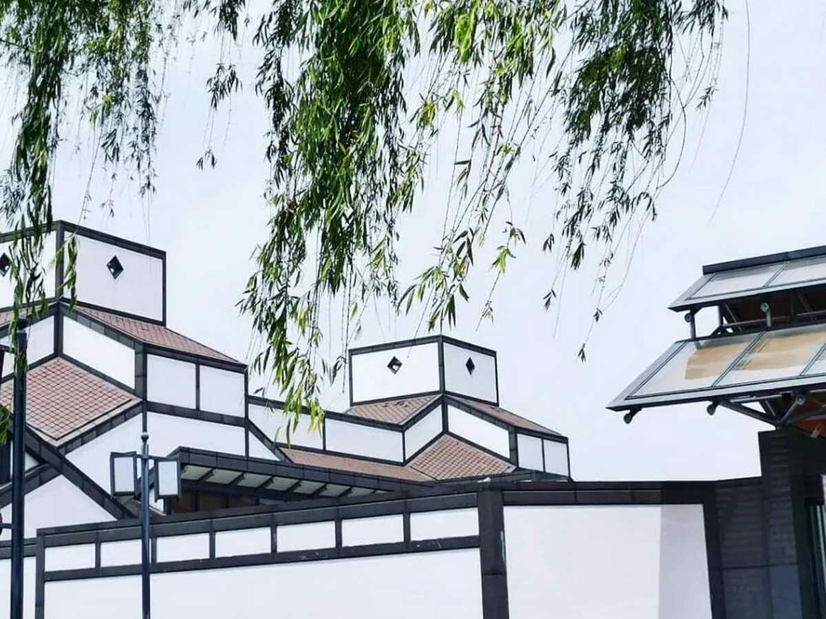 建筑色彩采用苏州传统建筑的黑、白、灰色,形成粉墙黛瓦的建筑形象,但在屋面材料的运用上,以“中国黑”片石取代砖瓦,切割成菱形体块干挂在坡屋面上,并与墙身连成一体。在主庭院上贝聿铭颇为煞费苦心。“譬如不用传统的太湖石,也不用我在香山用的石灰石,我希望从中国古代山水书画中寻找园林设计的灵感,并与苏州当地的能工巧匠合作,争取造出一个有新意的苏州园林”。