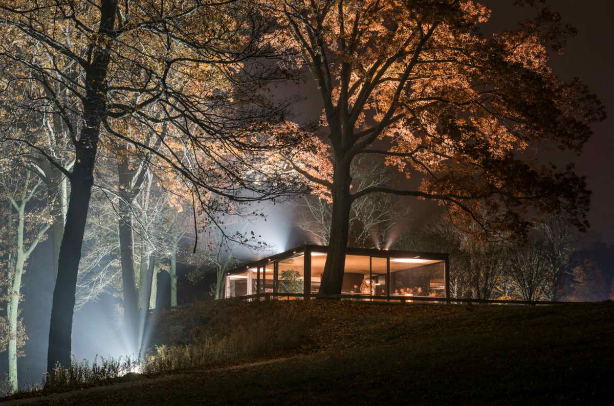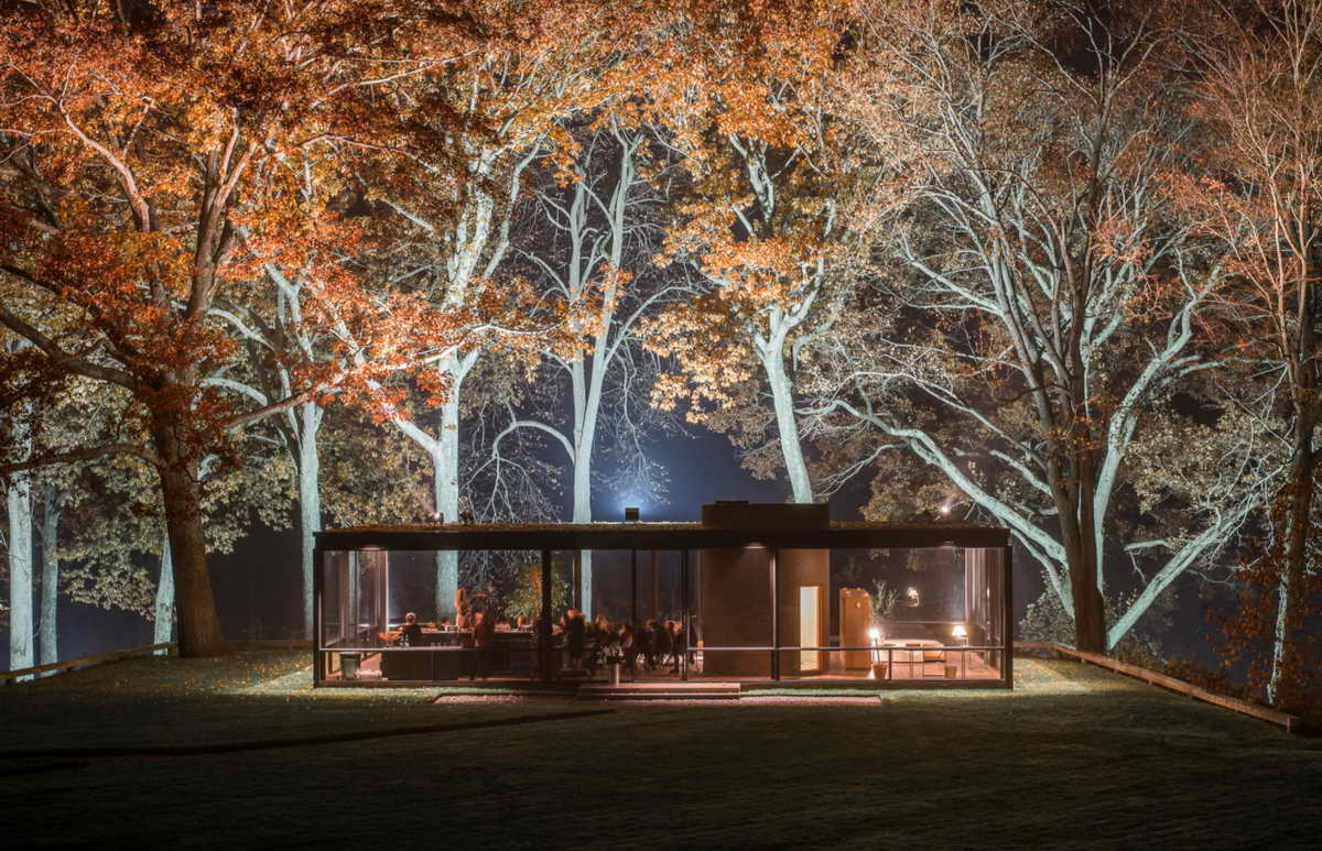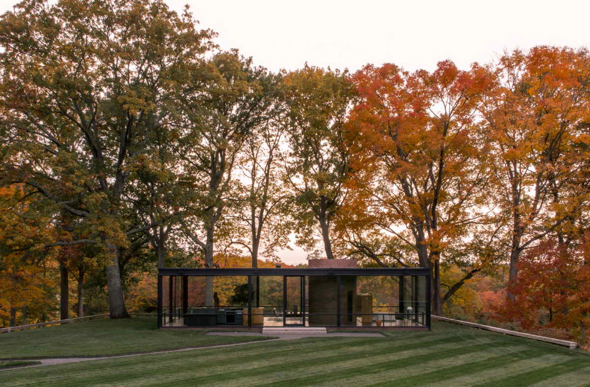 摄影师 Lane Coder 在夏季和冬季都参观了位于康涅狄格州新迦南的 Philip Johnson 玻璃屋,但秋季是他最期待的季节。“火热的枝叶、令人难以置信的光线和不可预测的天气之间,适合拍出动人的照片,”
