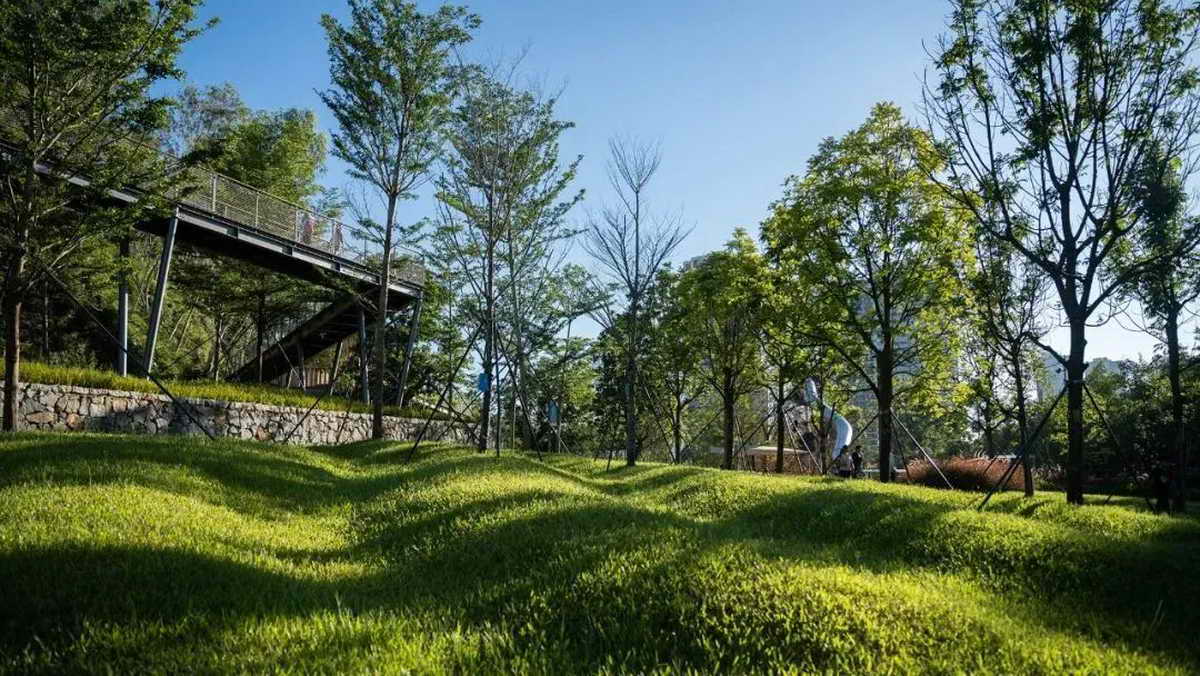 公园坚持尊重自然、保护自然的理念,充分利用了场地原有的地形地貌与山体资源,最大限度地保留原有自然山貌和植物群落多样性的特征。