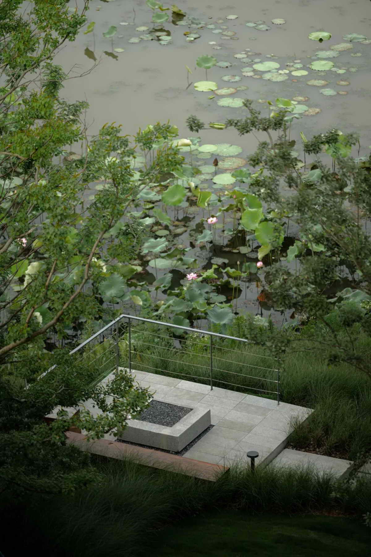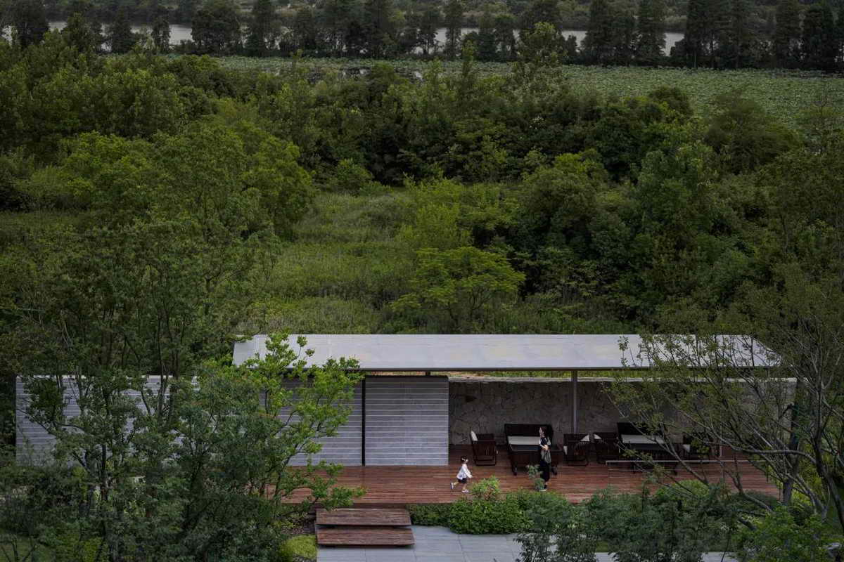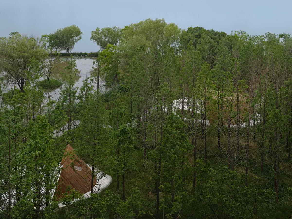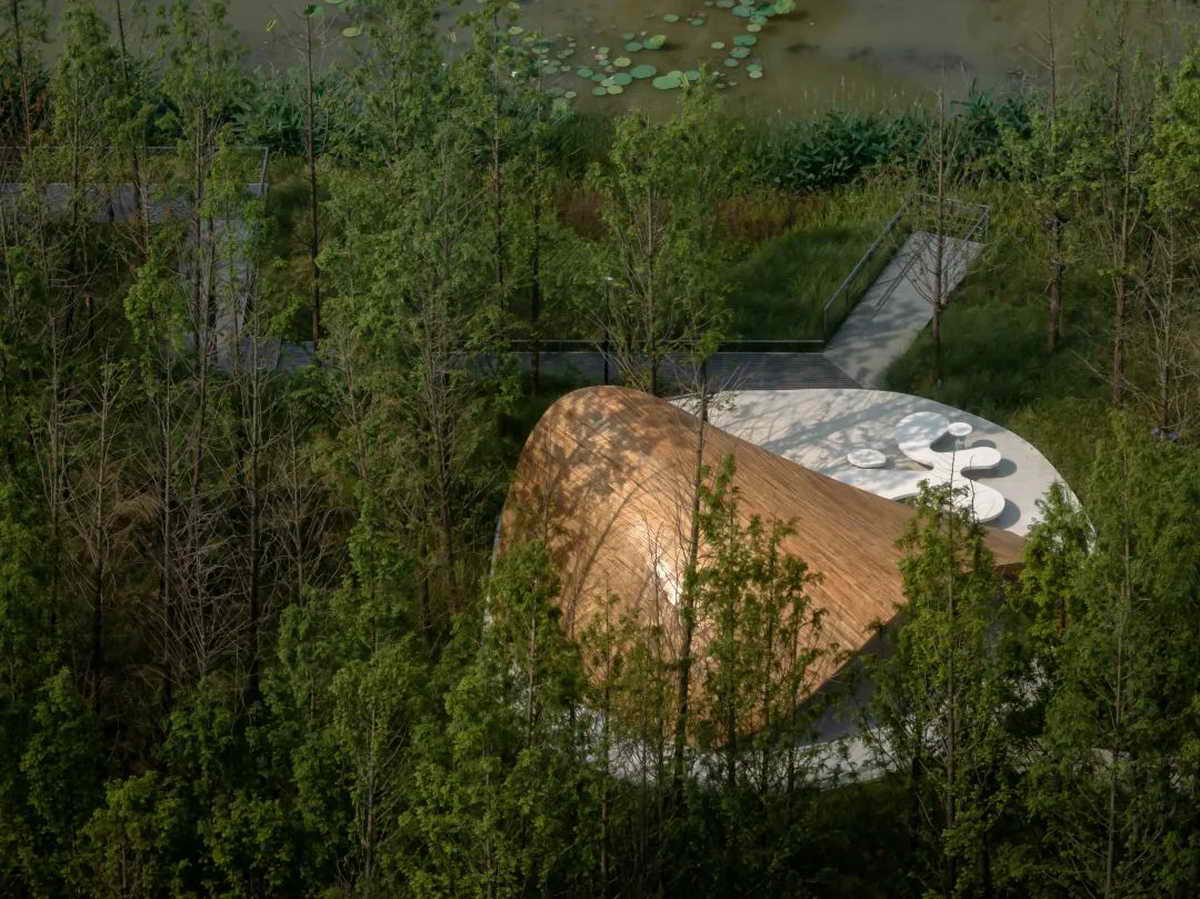 荷叶”与湿地之间互为风景,其边界形成了可以瞭望的景框,就像古园的景窗,存意而不刻意。
