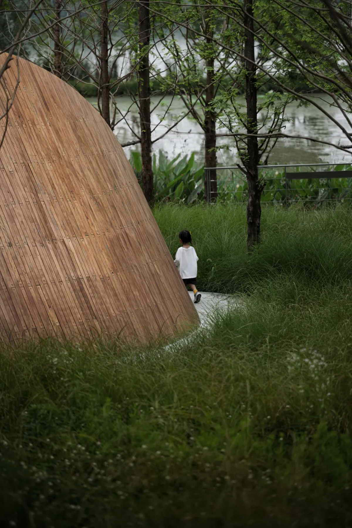 我们这次在严西湖畔的低干预尝试,有感于现场的自然资源。通过在地性的延展、环境的细节、装置的尺度以及小气候的营造,让人在学习自然的同时,又能对环境最大的尊重。虽然场地展示的景观范围只是整体湖岸绿地中的一小部分,但希望这次实践可以成为一粒种子,在此地生根发芽,并向周边蔓延,为严西湖畔未来的整体公园营造带来更多的可能。