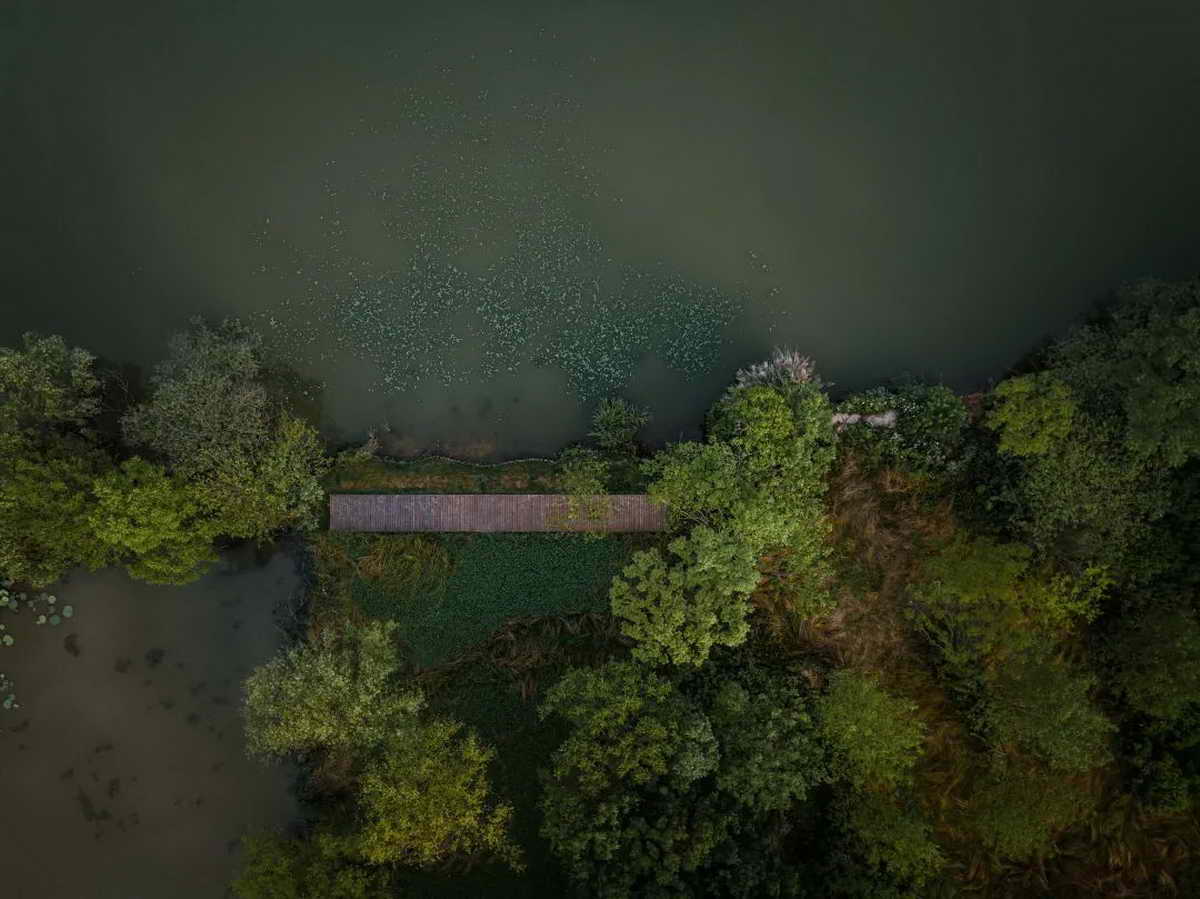 我们在武汉严西湖畔遇到了一片原始的风景,离市中心距离20公里, 刚好是一处近郊避世之所。政府规划在此设置滨湖公园,以服务周边社区居民使用。其基底与城市中大多数湖泊风景不同,此处更像是未被发现的秘密之地,野生而诗意,隐秘而优雅。