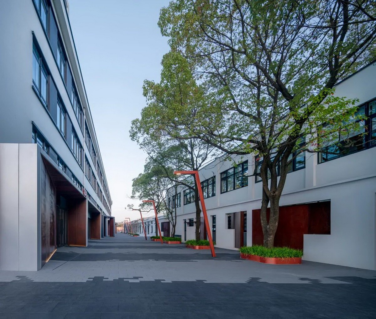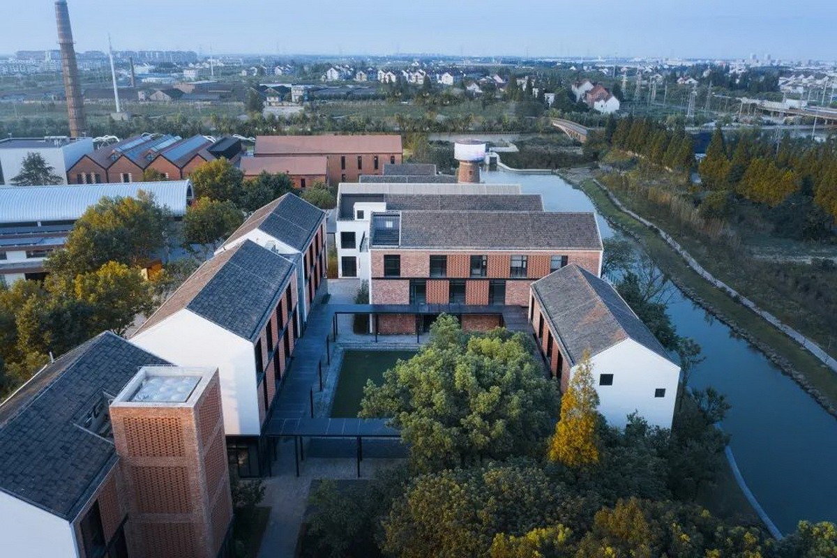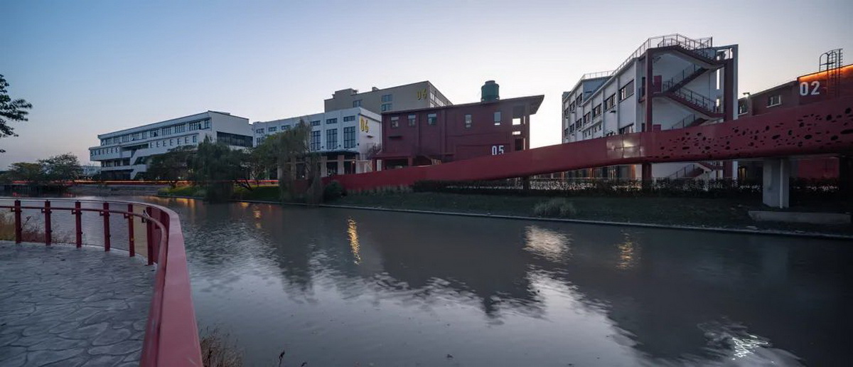1. 城市更新不是对建筑进行简单的翻新,而是对建筑的整体身份和整体功能的一个反复论证,找到最合适于它的新身份——更有利于未来的、功能上的更新。2. 整体性的空间形象塑造,在复杂与混乱的冲突中,通过建筑、景观等手法重新定义园区的身份。3. 将工业建筑与江南古镇相融合,运用当地材料和现有材料的转换,体现在地性。4. 以生态景观、绿色建筑的手法对工业生产给场所造成的破坏、污染进行“修补”。