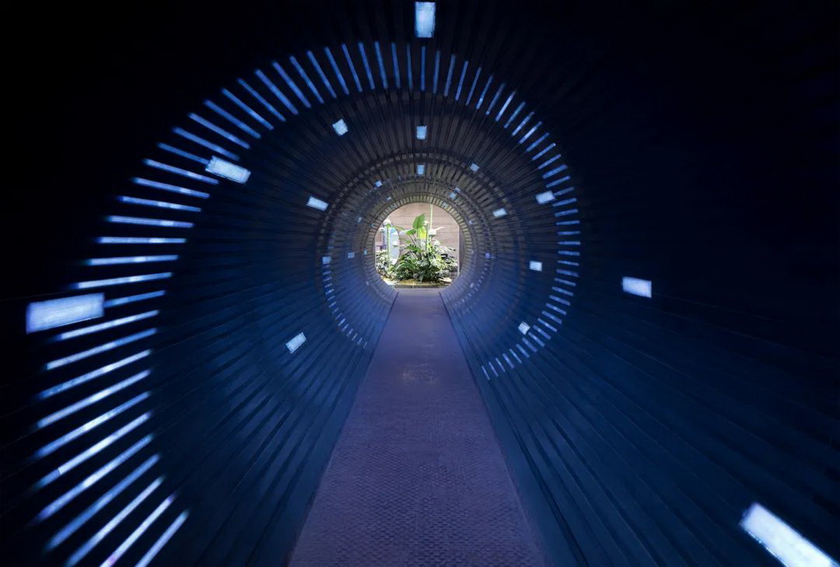 室内设计围绕这个核心特质,注入以制皂主题为核心体验内容的叙事线,结合新媒体手法,完整呈现了制皂主题的魔幻意象室内空间,穿越皂厂历史和当下的时间场景,成为杨浦滨江岸线深受欢迎的公众活动空间。