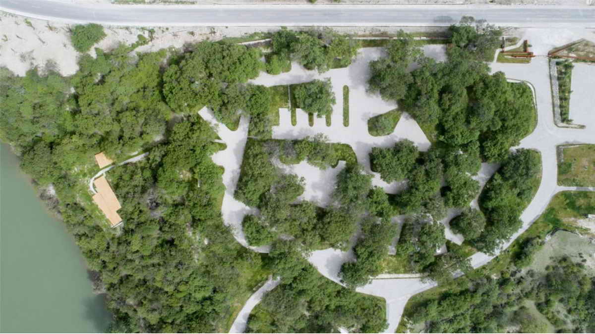设计利用及梳理场地内零碎的石块,与新的房车道路有机结合在一起,耐候钢板的边缘界定砾石营位与地被植物,这种自然结合生成的图案构成新的大地景观。
