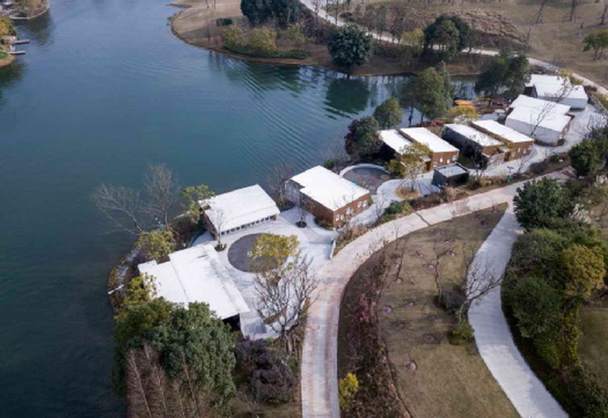 营地依托极佳的湖岸资源,呈带状发散布置。场地地势南高北低,利用现状场地高差关系,通过景观手法,实现麓客岛主要交通动线与营地内部动线相互独立,为营地活动提供了相对舒适内向的空间。