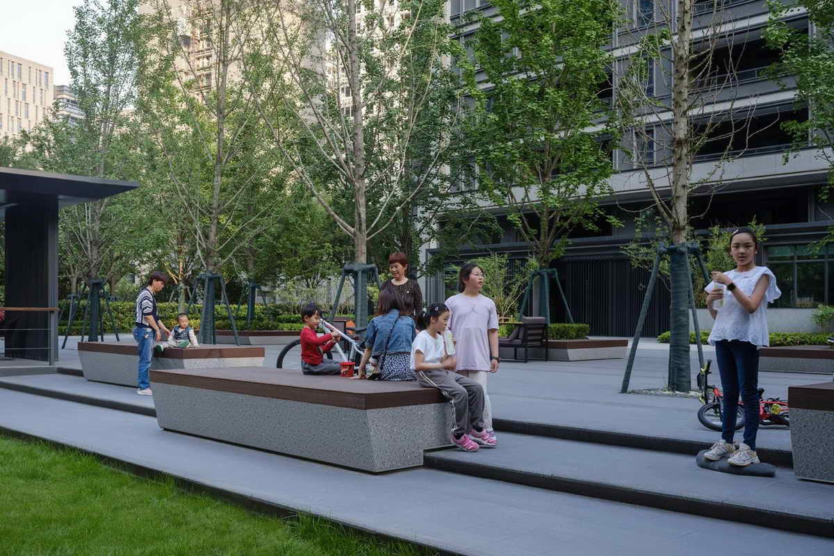 多样的休息坐凳就像水岸边的小舟,与整个场景形成一个整体,高低错落,相得益彰。特意加宽的形式,更是满足了不同人群的使用需求。