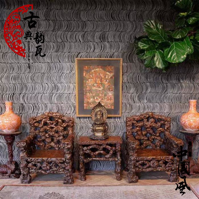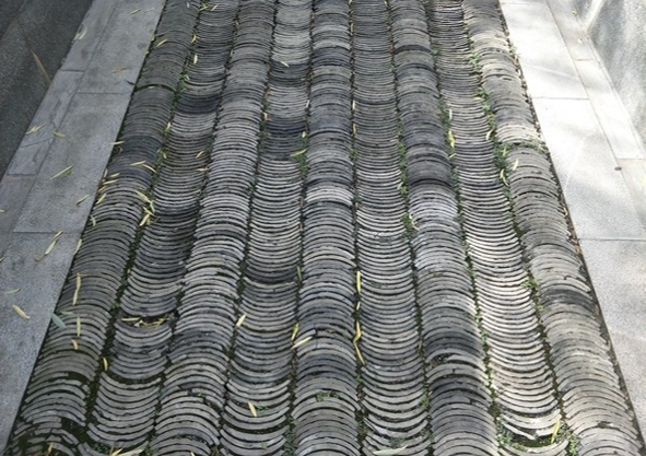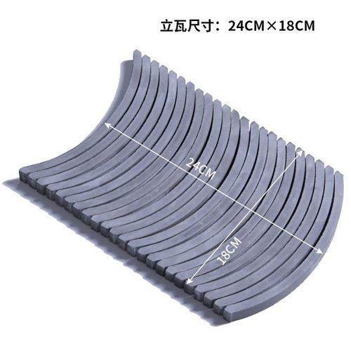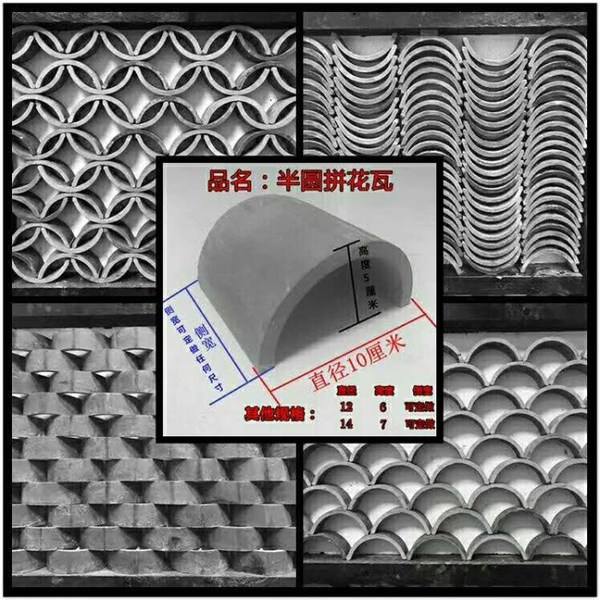 青瓦:以黏土为主要材料,烧制而成// 小青瓦:北方叫阴阳瓦,南方叫蝴蝶瓦、阴阳瓦,俗称合瓦,是一种弧形瓦// 颜色:青灰色、灰蓝色、暗蓝色// 主要规格:300×240、240×200、200×180、180X180、160X160等// 用途:主要用于屋顶、透窗、墙面装饰等