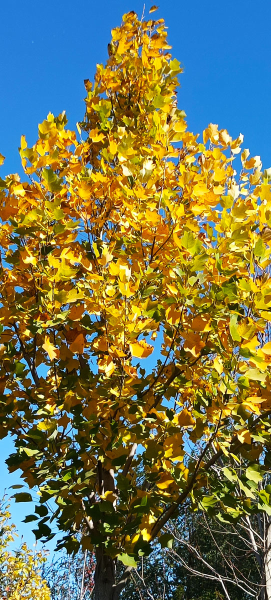 玉兰,不仅春季花开的大而美,秋季,看着树冠,绝不逊于秋色叶的职业选手↑