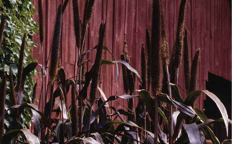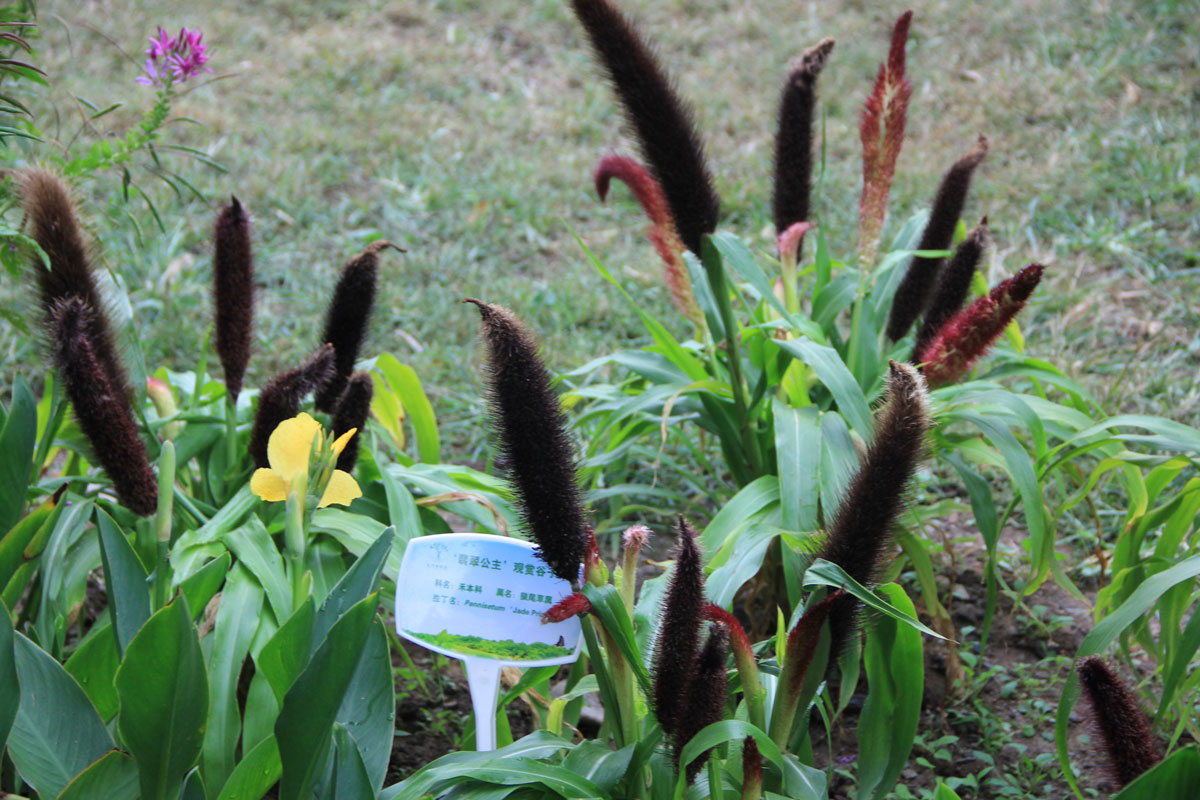 观赏谷子的茎秆、叶片和果穗幼嫩时是麦绿色,以后逐渐变成麦紫、粉紫、紫红、紫墨、暗紫等多种颜色,光亮美丽,极具观赏性。穗状圆锥花序直立向上,并有硬直的刚毛,很有生气。观赏性极佳。此外,幼嫩茎叶可作饲料,种子可作粮食和酿酒。总之,观察谷子的应用前景非常广阔。