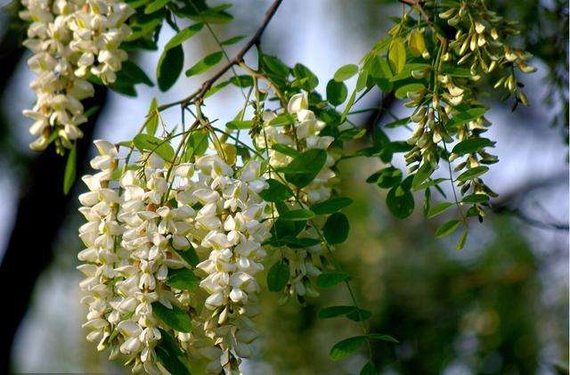 羽状复叶长达25厘米;叶轴初被疏柔毛,旋即脱净;叶柄基部膨大,包裹着芽;托叶形状多变,有时呈卵形,叶状,有时线形或钻状,早落;小叶4-7对,对生或近互生,纸质,卵状披针形或卵状长圆形,长2.5-6厘米,宽1.5-3厘米,先端渐尖,具小尖头,基部宽楔形或近圆形,稍偏斜,下面灰白色,初被疏短柔毛,旋变无毛;小托叶2枚,钻状。