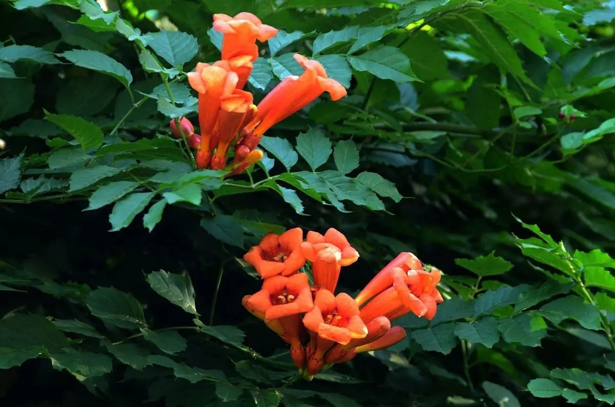 别名紫葳、五爪龙、红花倒水莲、倒挂金钟、上树龙、上树蜈蚣、白狗肠、吊墙花、堕胎花、芰华、藤罗花。