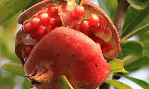 果成熟后变成大型而多室、多子的浆果,每室内有多数子粒;外种皮肉质,呈鲜红、淡红或白色,多汁,甜而带酸,即为可食用的部分;内种皮为角质,也有退化变软的,即软籽石榴。