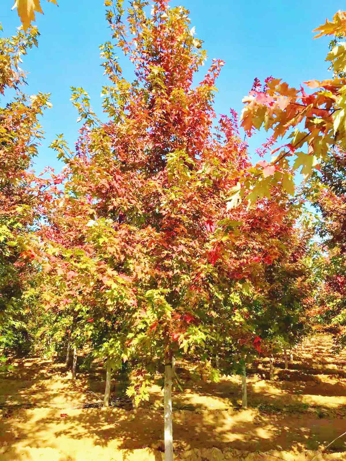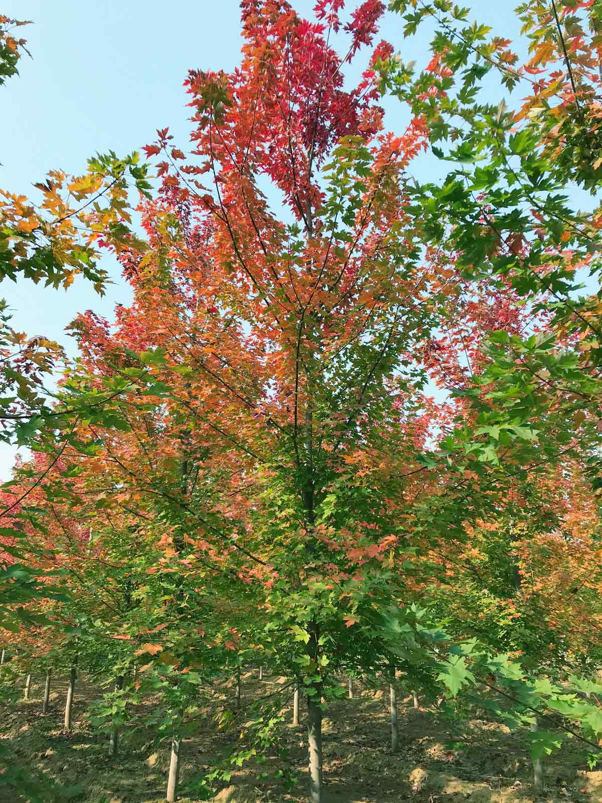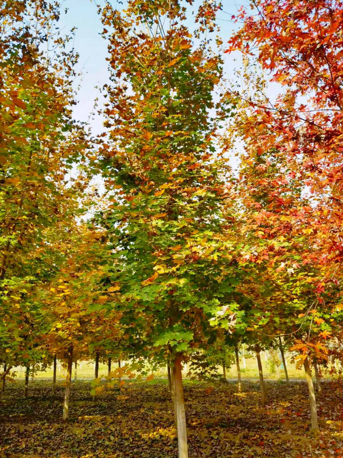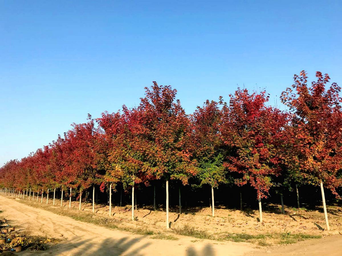 秋火焰的特点是叶色变化统一,秋季变色火红鲜亮,树形层次感强,耐寒极值在零下35度左右,应用地域最广,是目前市场上性价比最高的品种