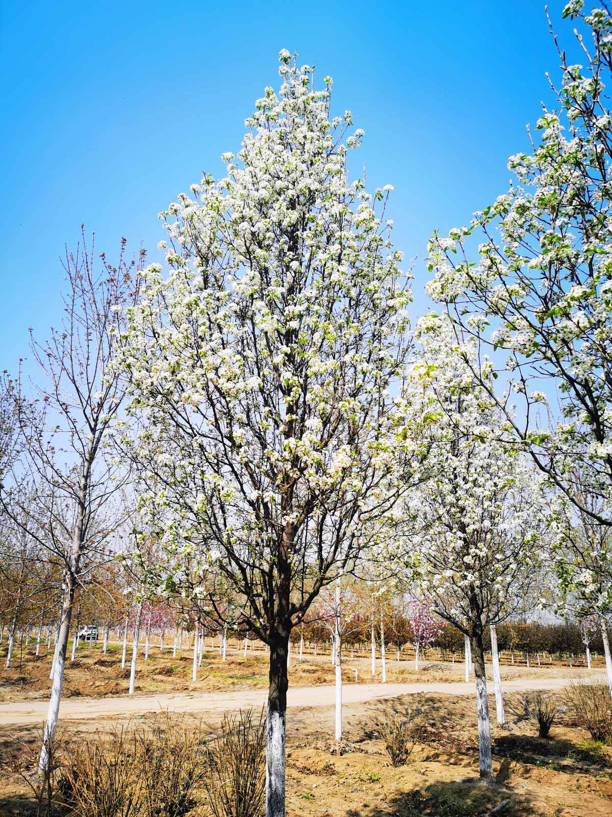 春天满树白花,夏天叶片是有蜡质感的亮绿,秋后叶片变成多彩的红色、橙色、紫色。彩叶豆梨的环境适应性和多彩的叶片是其最大的优点。