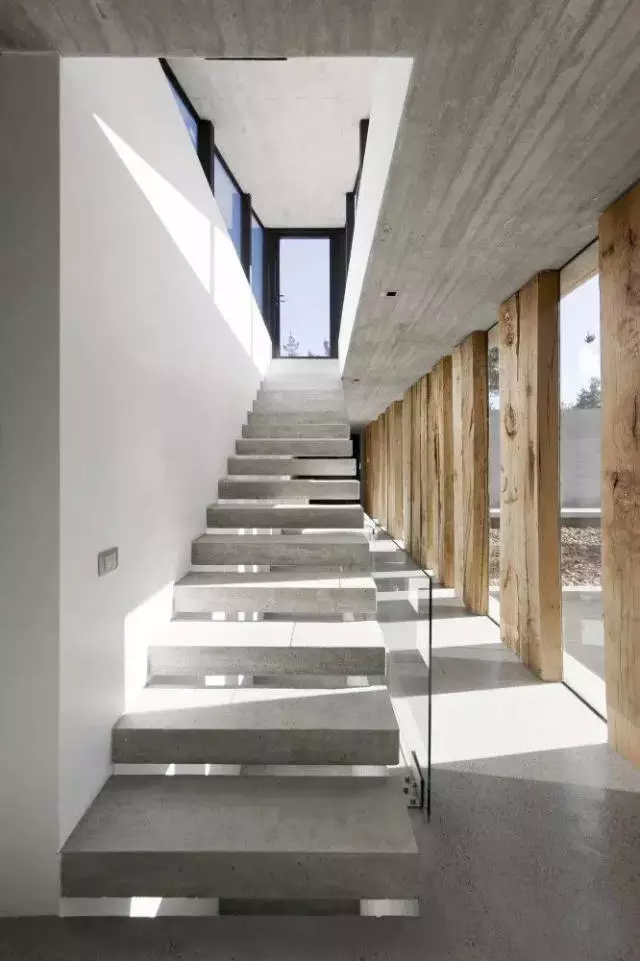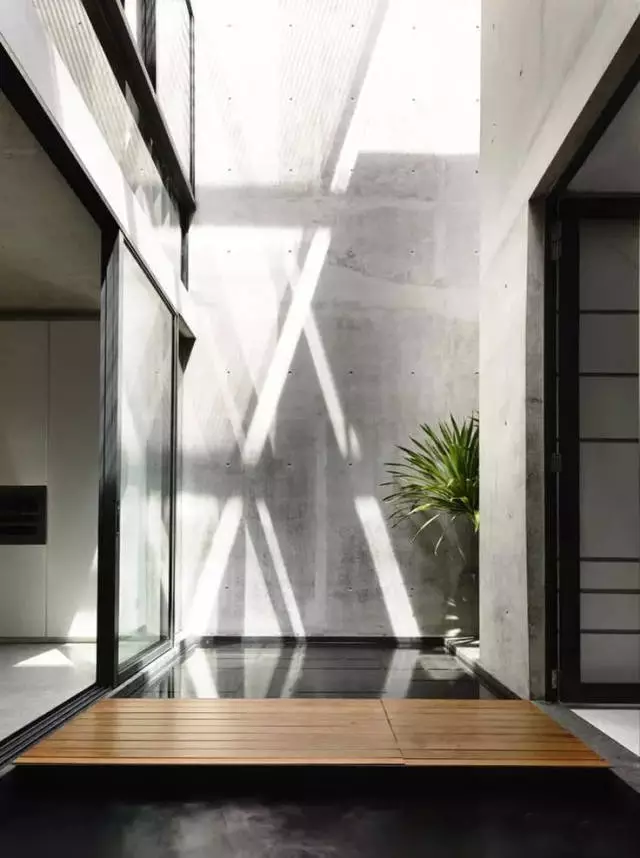 冷峻灰调子的清水砼,使这些空间显示出沉静抽象的品质,当自然的光线、微风从精心设计的缝隙流进空间时,产生了令人震颤的力量。