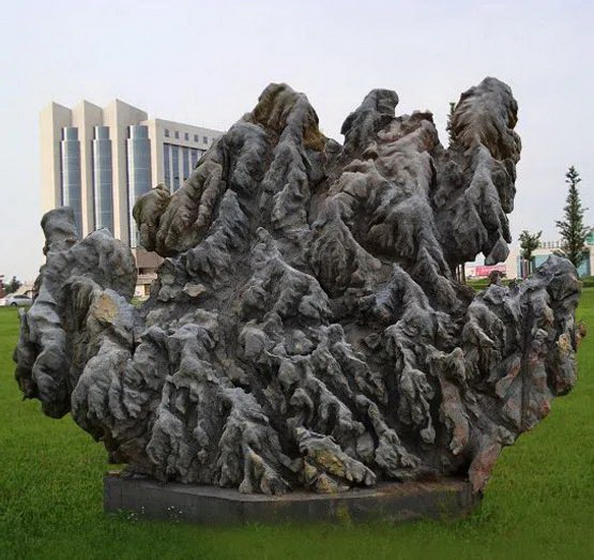 ▲表面拉槽的景石