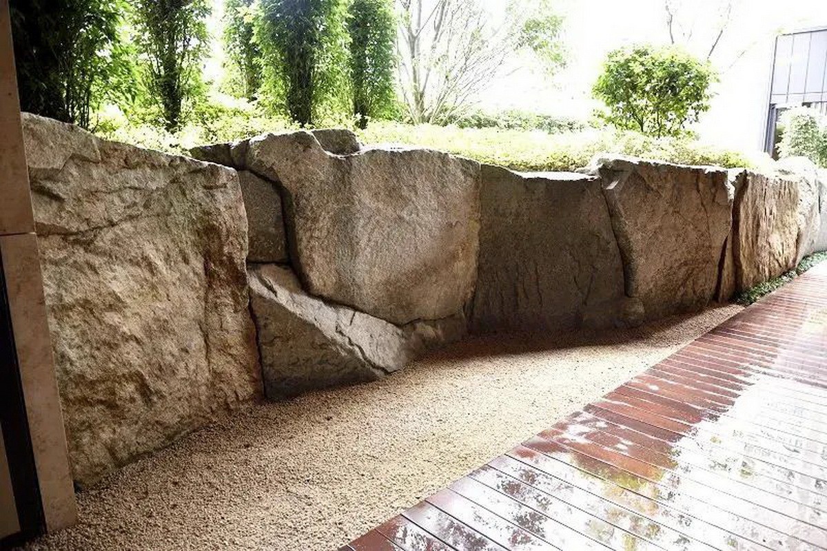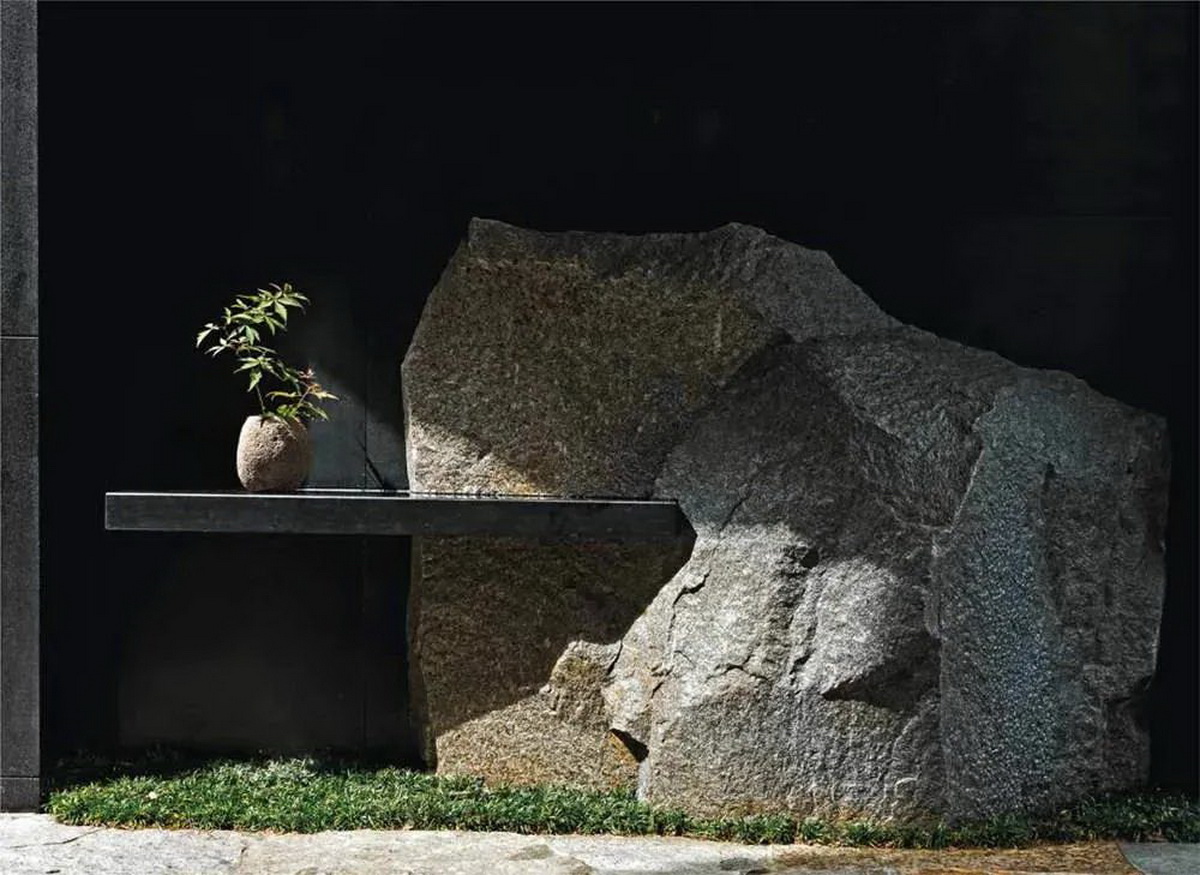 (1)在自然意境的景观中多选用具有原始意味的石材,如未经切割并显示出风化痕迹的石头、被河流海洋强烈冲击或侵蚀的石头、生有锈迹或苔藓的岩石;