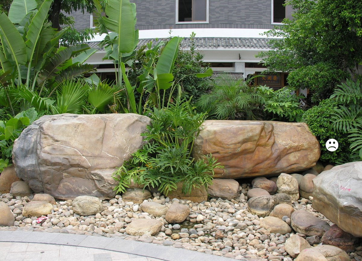 (3)对于同一景观空间景石用量较大的情况,景石的品种应该统一,不然会导致局部与整体不协调,总体效果不佳;
