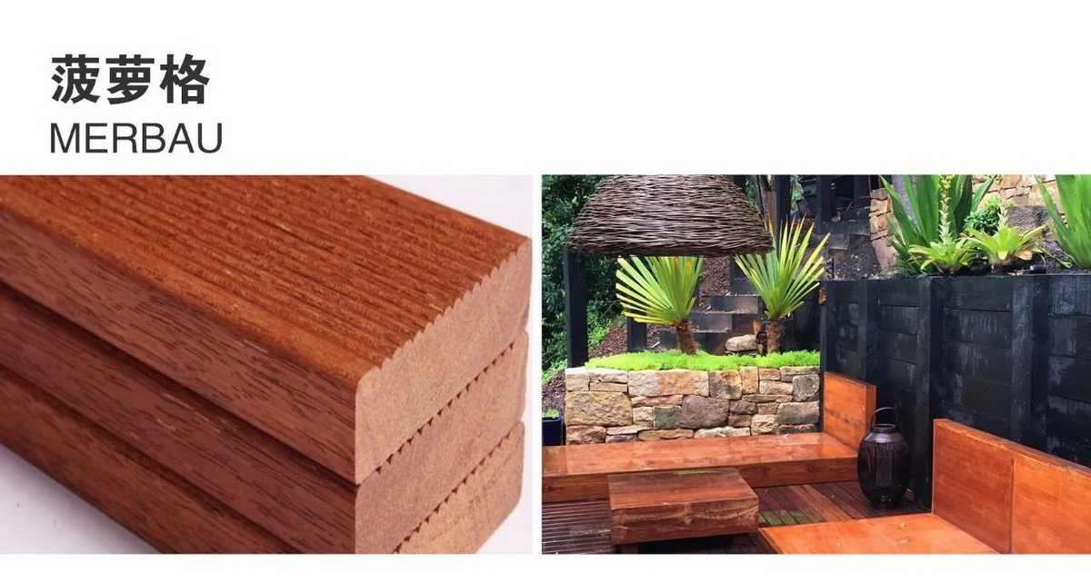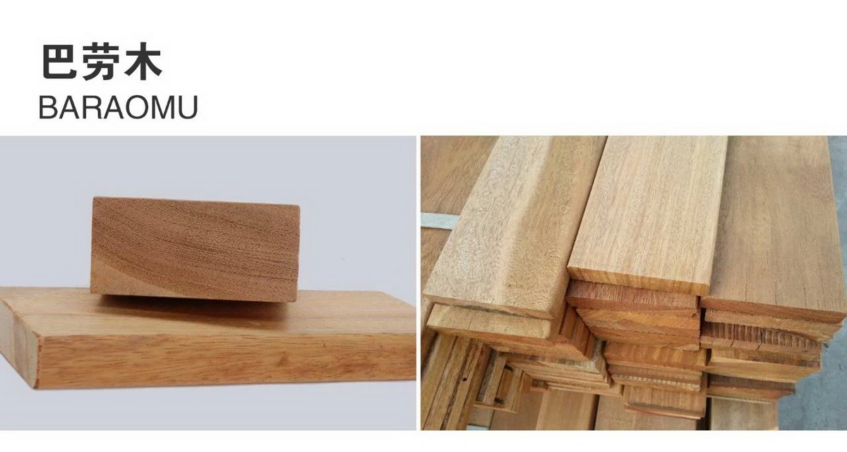 3、巴劳木:主要产于印度尼西亚和马来西亚,它是天然环保防腐木,耐候性强,使用周期长,纹理细密,没有节疤,高度耐磨,表面光滑,是比较高档的硬木。