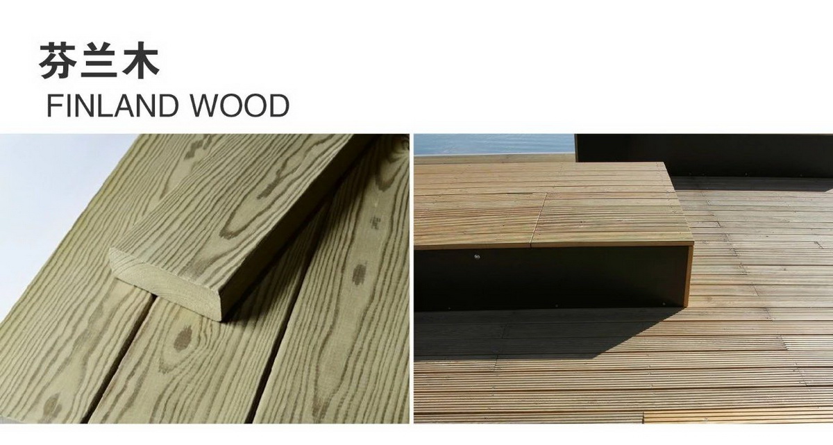 5、芬兰木:又名北欧赤松,因为防腐的概念最早是从芬兰引进的,所以早期有把防腐木统称为芬兰木的概念。芬兰木是质量上乘的欧洲赤松,木质紧密、含脂量低,具有清晰细腻的外观木纹和良好的结构能力。