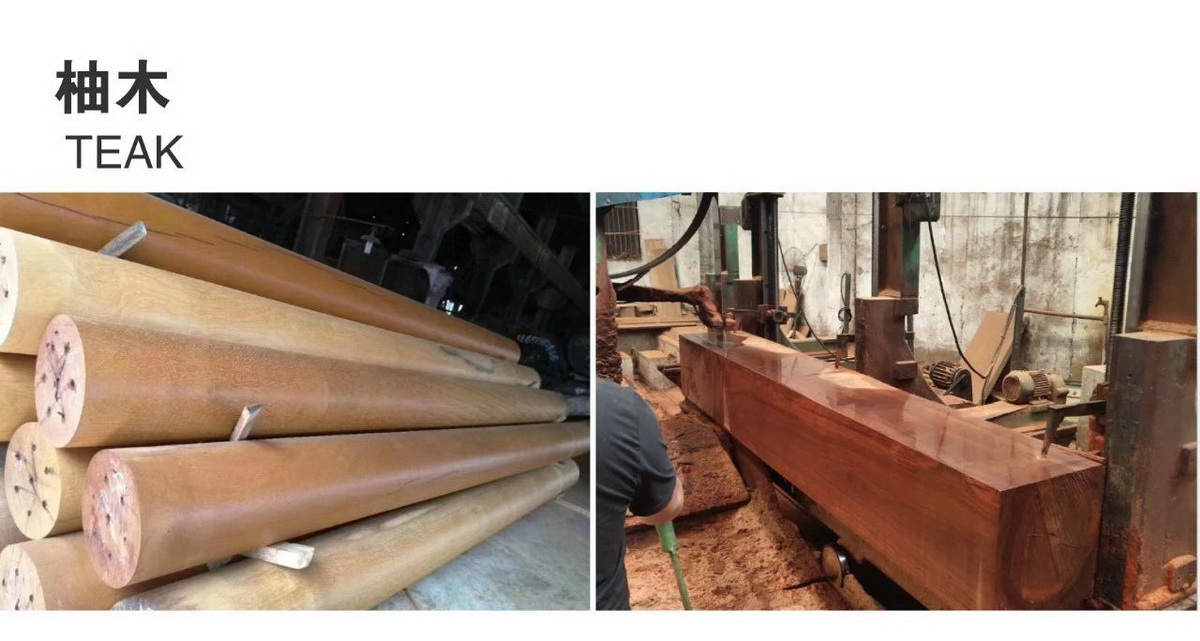 4、柚木:主要产于缅甸、泰国、印度和印度尼西亚。心边材区别明显,边材黄褐色微红,心材浅褐色,生长年轮明显,有光泽、密度中、硬度中、干燥质量好且稳定,极具防腐和防虫能力,是最好的天然防腐木材,