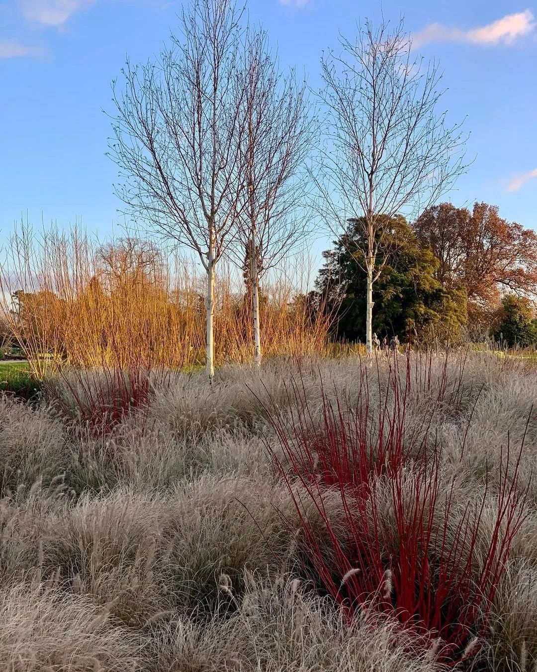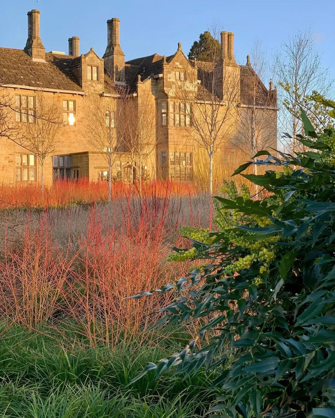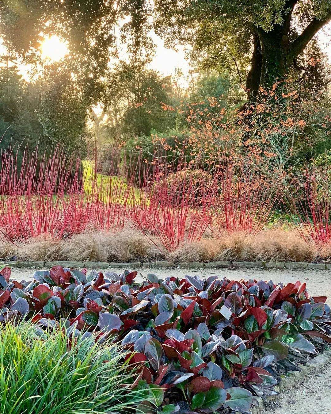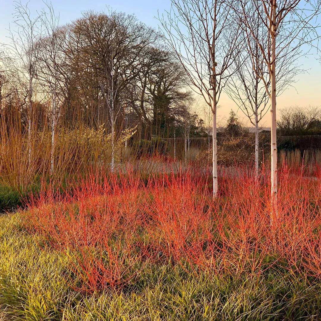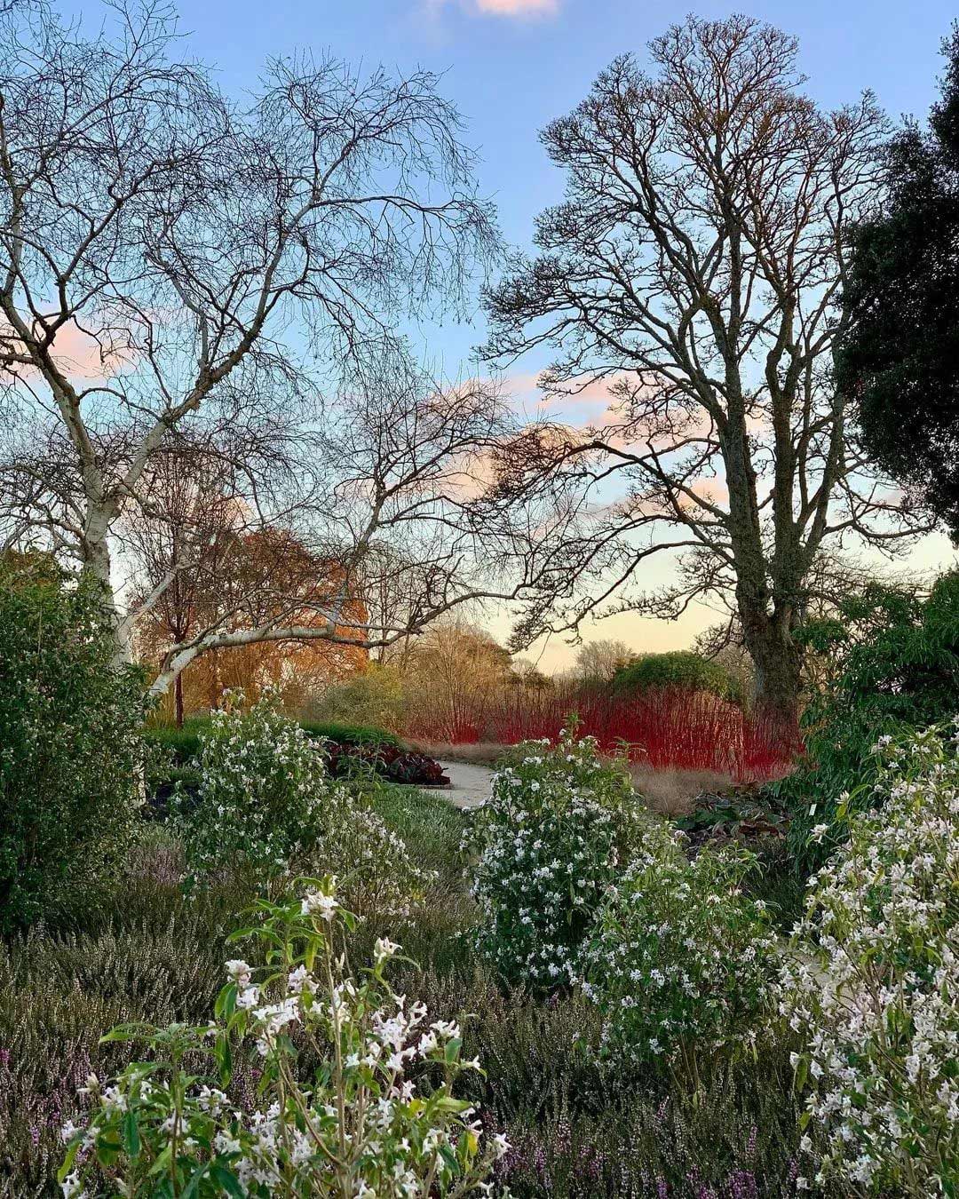 在一年中最冷的时候,需要一些色彩植物来吸引眼球,成为振奋精神的力量。冬天这里没有蓝色,只有红色、橙色、紫色、金色和暗红色。山茱萸的茎,金缕梅的花和岩壁菜的叶子,都为这个场景贡献了力量——那些温暖、明亮的色彩在冬季淡淡阳光的照射下更加强烈。 ![]()