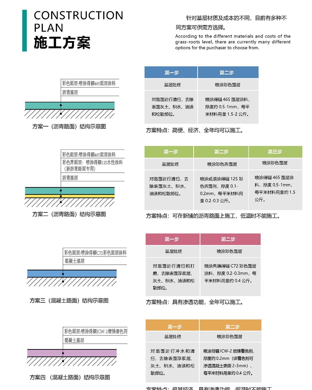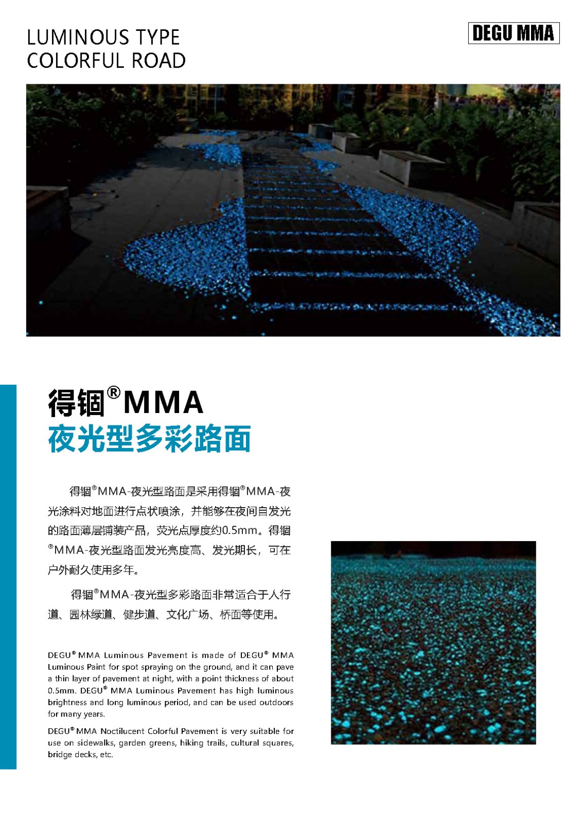 得锢“MMA多彩路面主要有撒砂型、喷点型、平喷型、拉毛型、喷砂型、仿石型、夜光型等七种类型。