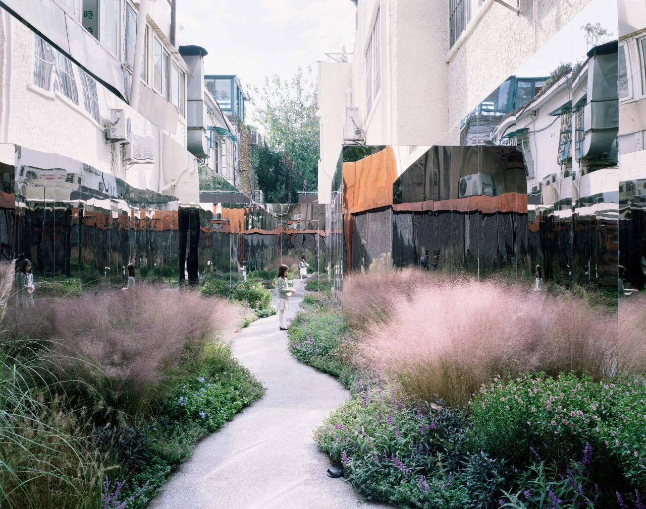 项目位于上海市长宁区新华路上,道路两旁布满高大茂密的梧桐和绿树掩映的洋房,因此被誉为“上海第一花园马路”。场地是新华路上两栋建筑之间一个长22m、最宽处不足4.2m的弄堂空间,过去是一个路边违建的小面馆,面馆拆迁后,此处就变成了一个闲置空间。设计师通过镜面不锈钢系统、耐候钢入口、植物系统三个设计动作将其改造成了一个能为周边居民服务的口袋公园。