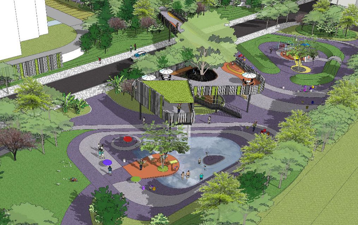 本项目规划依山就势,围绕中心山体展开,景观定位为大型山体运动+主题儿童活动空间特色大盘,充分利用地形创造丰富有趣的全龄段主题活动空间,风格定位现代简洁。